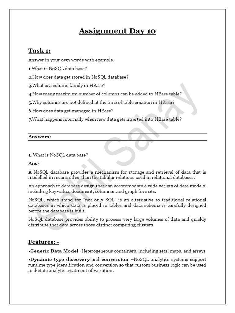 Examples of NoSQL are: Cassandra, MongoDB, HBase, Redis etc.