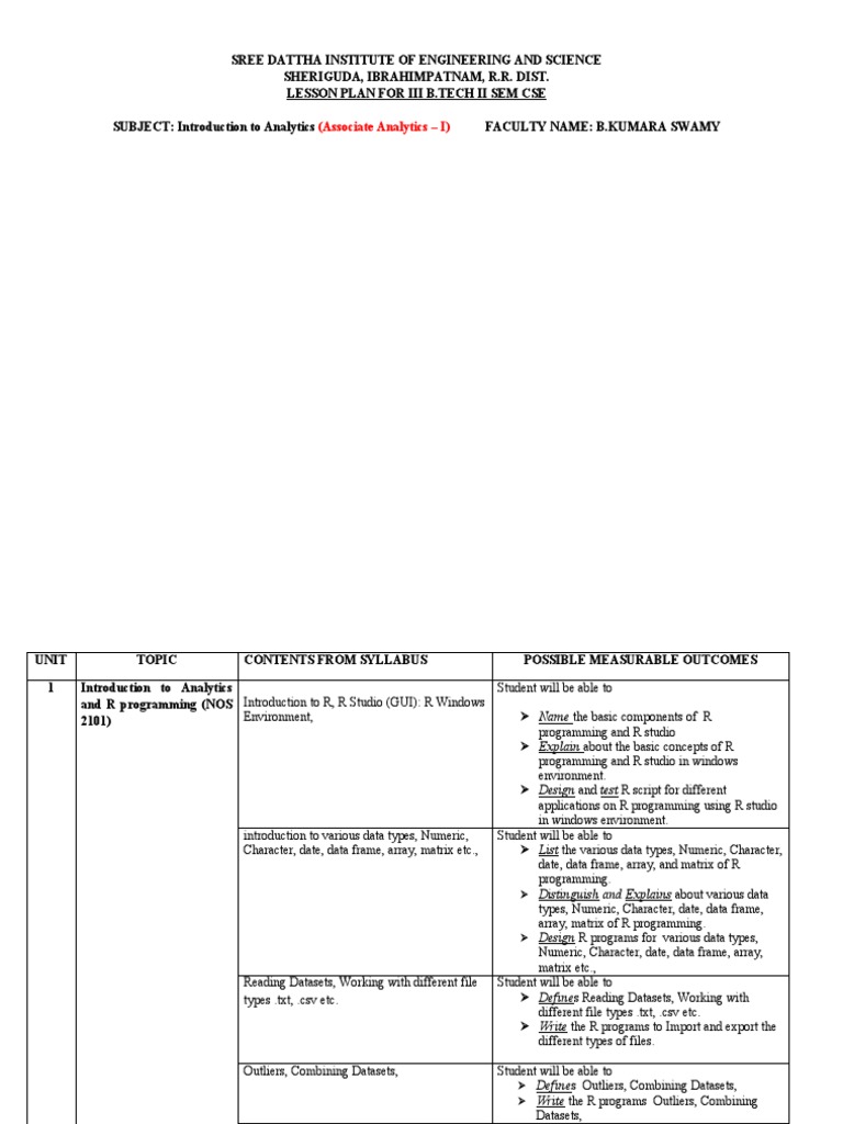 LESSON PLAN FOR III B.TECH II SEM CSE