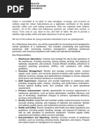 1. Responsible for warehouse operations and assets.