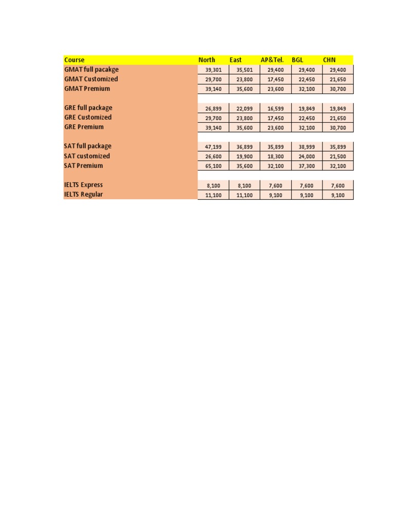 GMAT full pacakge 39,301 35,501 29,400 29,400 29,400