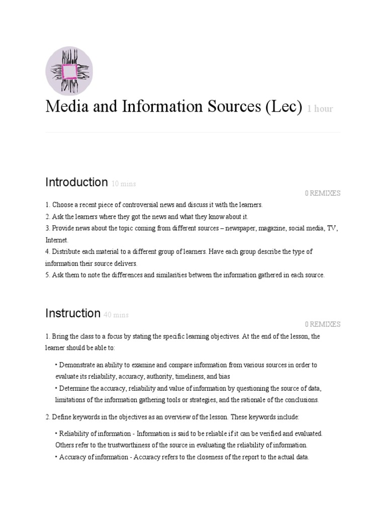 Media and Information Sources (Lec) 1 hour