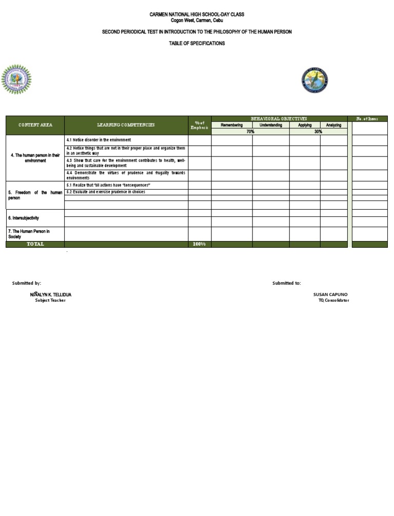 SECOND PERIODICAL TEST IN INTRODUCTION TO THE PHILOSOPHY OF THE HUMAN PERSON