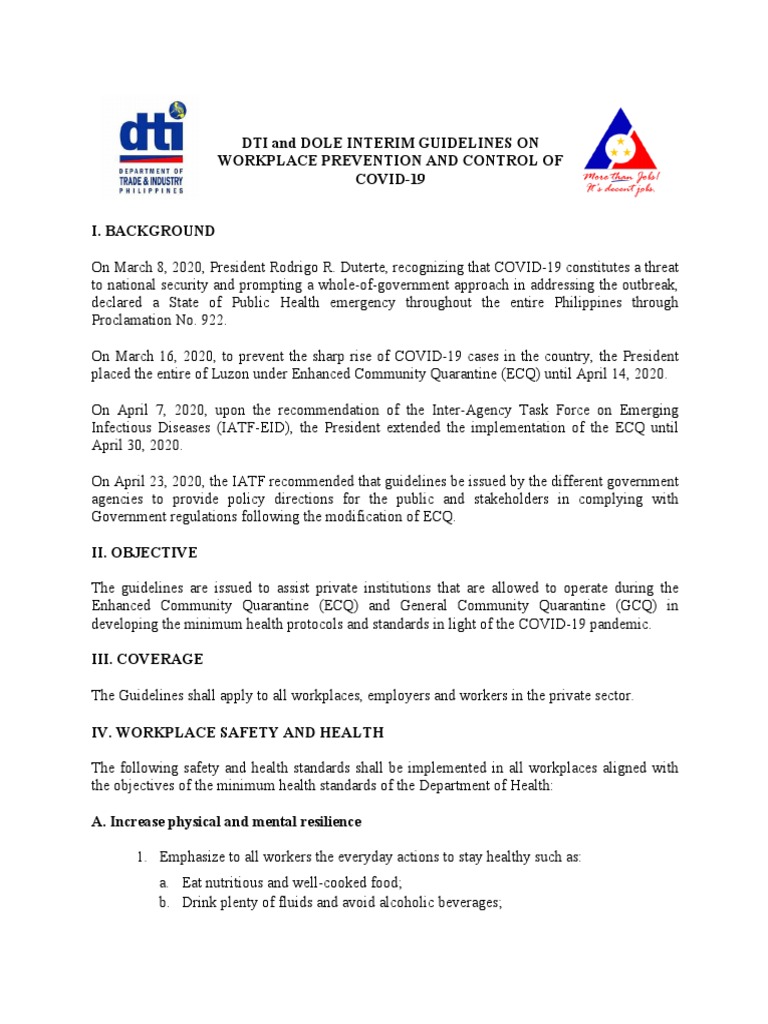 DTI and DOLE INTERIM GUIDELINES ON