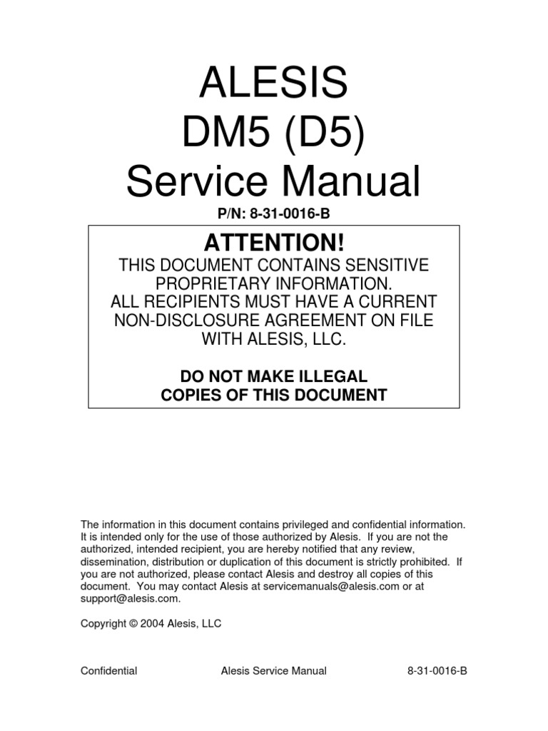 document. You may contact Alesis at servicemanuals@alesis.com or at