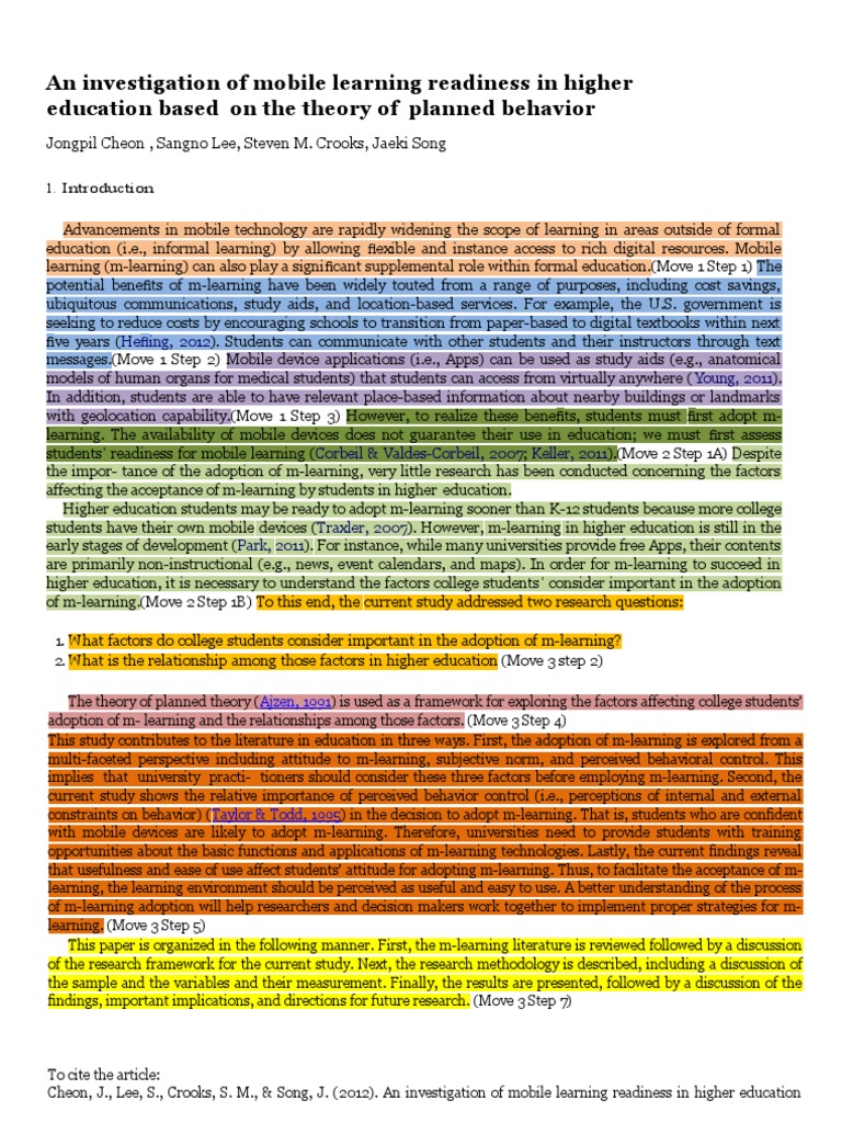 adoption of m- learning and the relationships among those factors. (Move 3 Step 4)