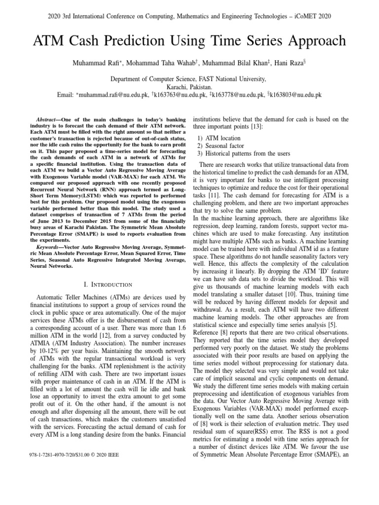 industry is to forecast the cash demand of their ATM network. three important points [13]: