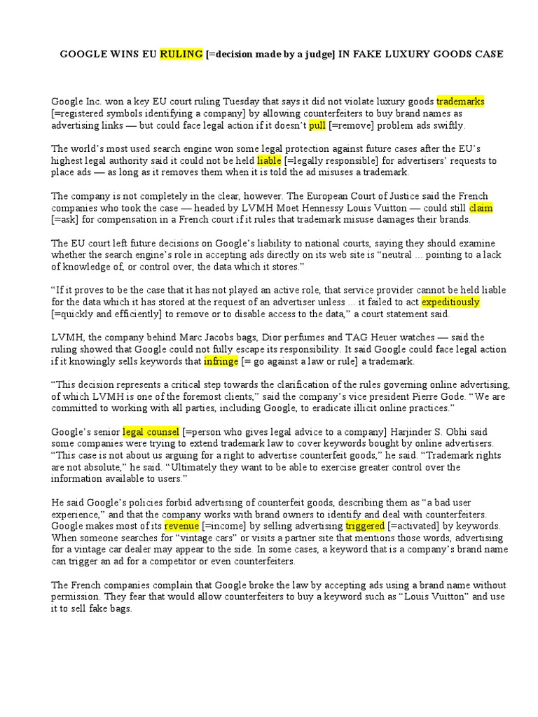 GOOGLE WINS EU RULING [=decision made by a judge] IN FAKE LUXURY GOODS CASE