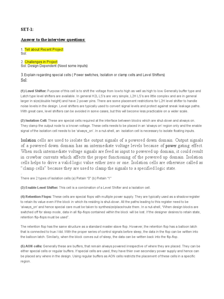 3.Explain regarding special cells ( Power switches, Isolation or clamp cells and Level Shifters)