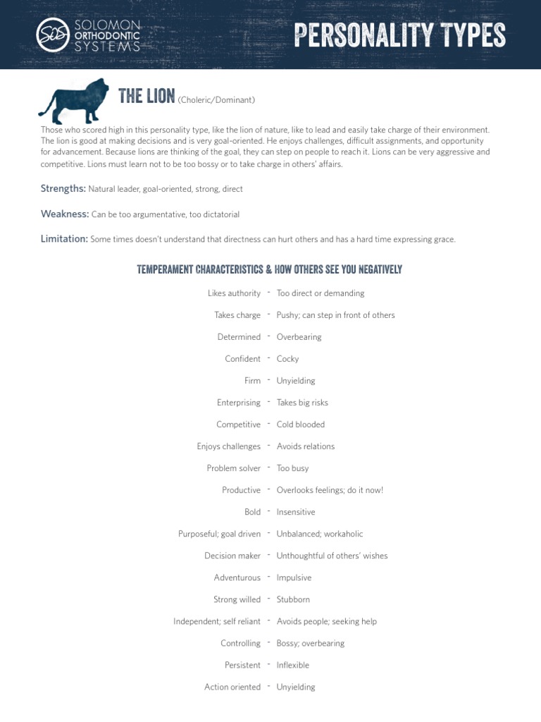 Those who scored high in this personality type, like the lion of nature, like to lead and easily take charge of their environment.