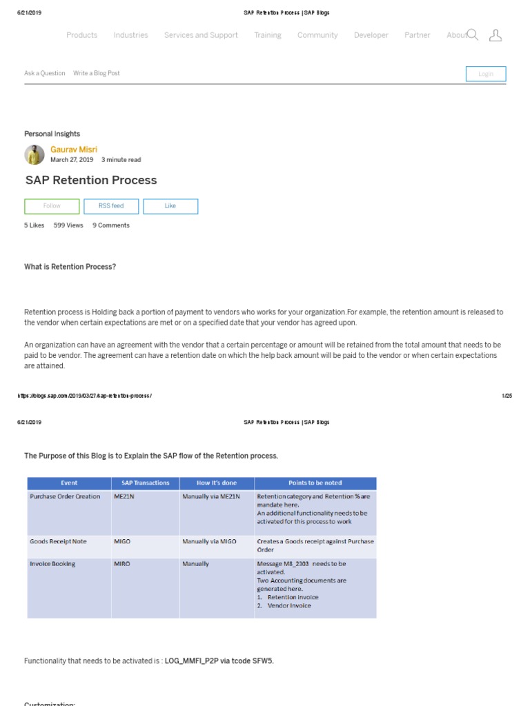 6/21/2019 SAP Retention Process | SAP Blogs