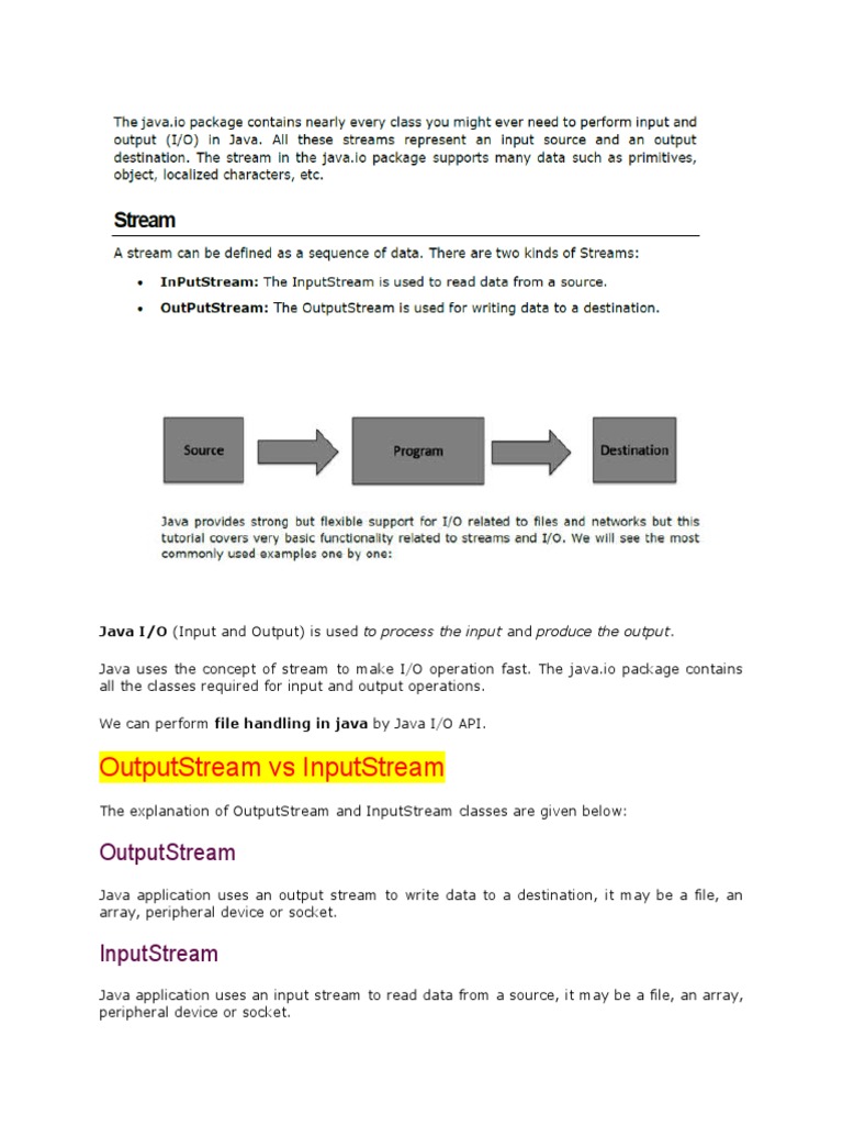 Java performs I/O through Streams. A Stream is linked to a physical layer by java I/O system to