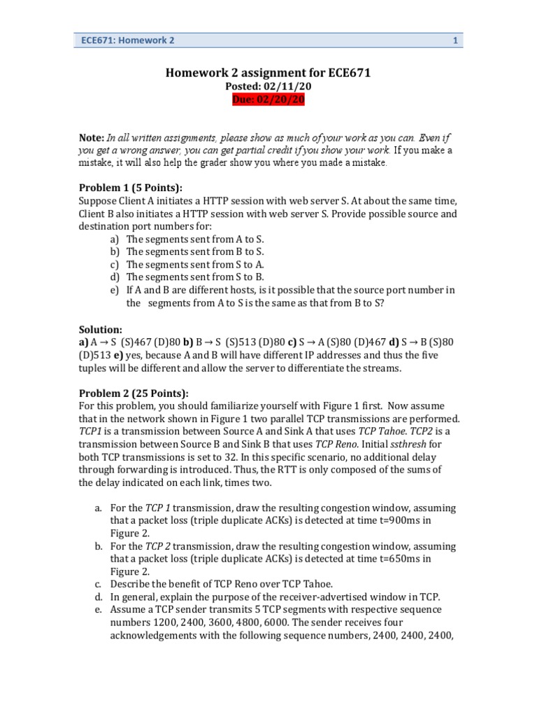 e. Assume a TCP sender transmits 5 TCP segments with respective sequence