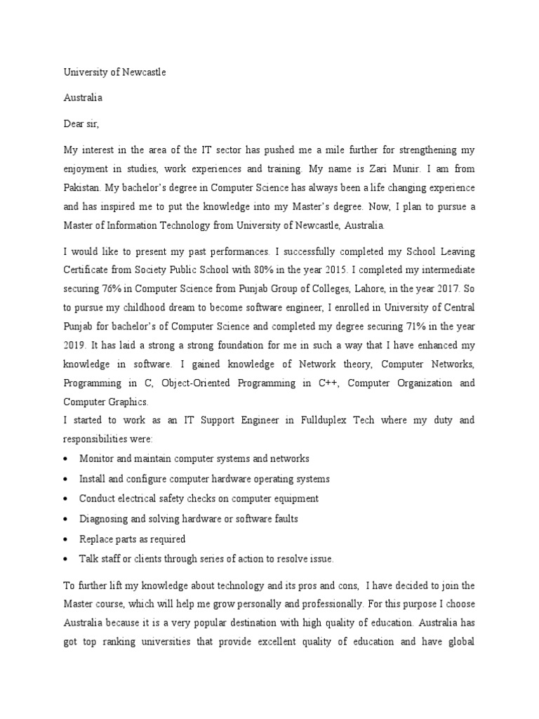 My only intention is to pursue my Master’s degree in Australia, acquire professional skills and