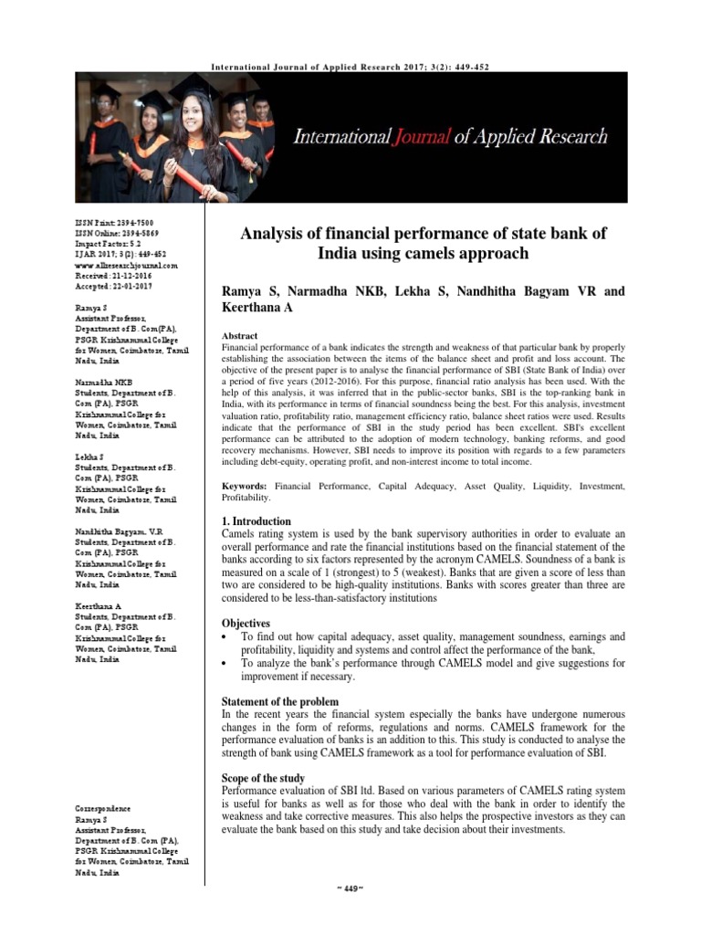 for Women, Coimbatore, Tamil Financial performance of a bank indicates the strength and weakness of that particular bank by properly