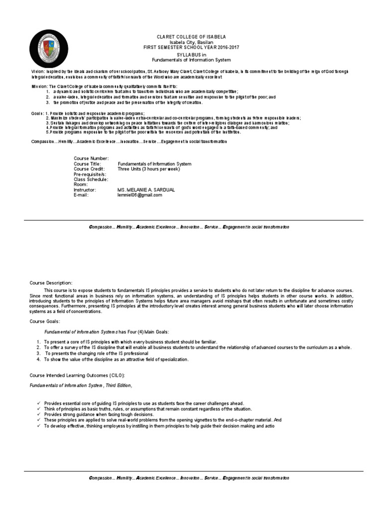 Mission: The Claret College of Isabela community qualitatively commits itself to:
