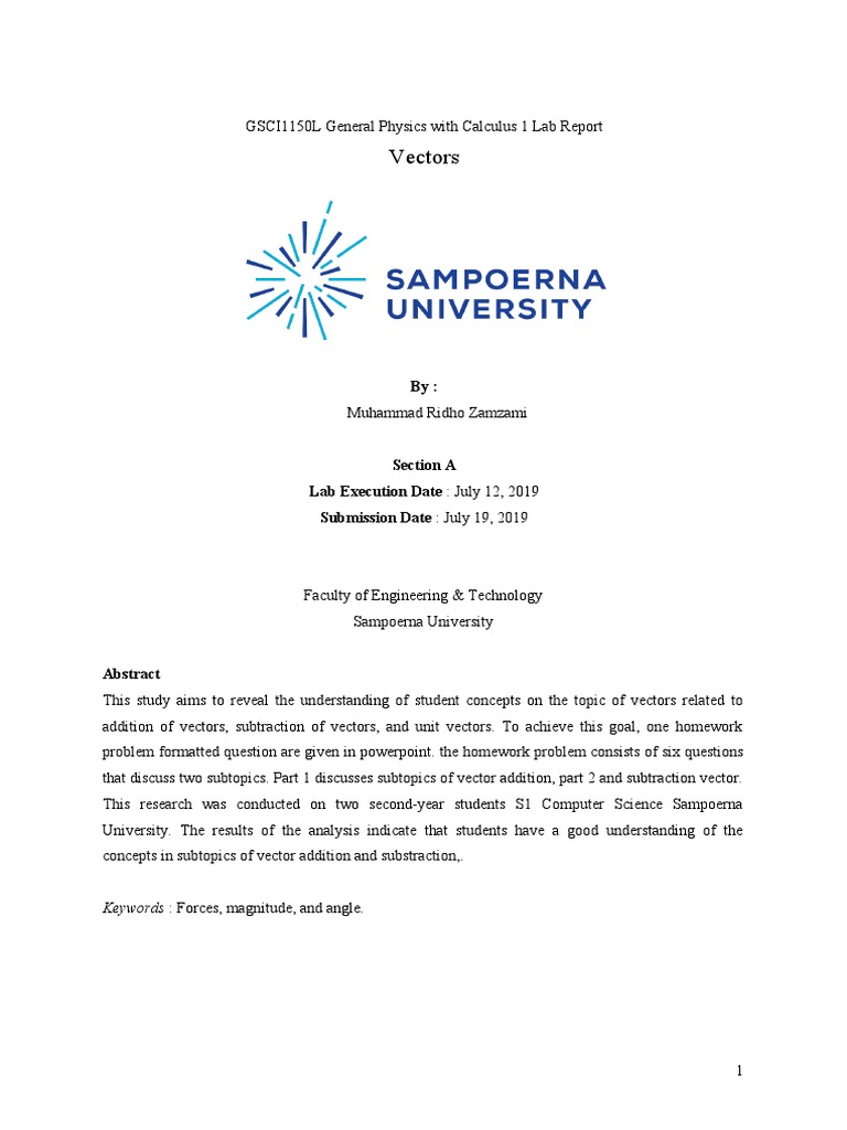 GSCI1150L General Physics with Calculus 1 Lab Report