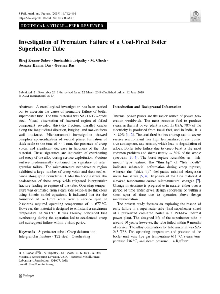 6. S.K. Dhua, Metallurgical investigation of failed boiler water-wall Power Industries, p. 1