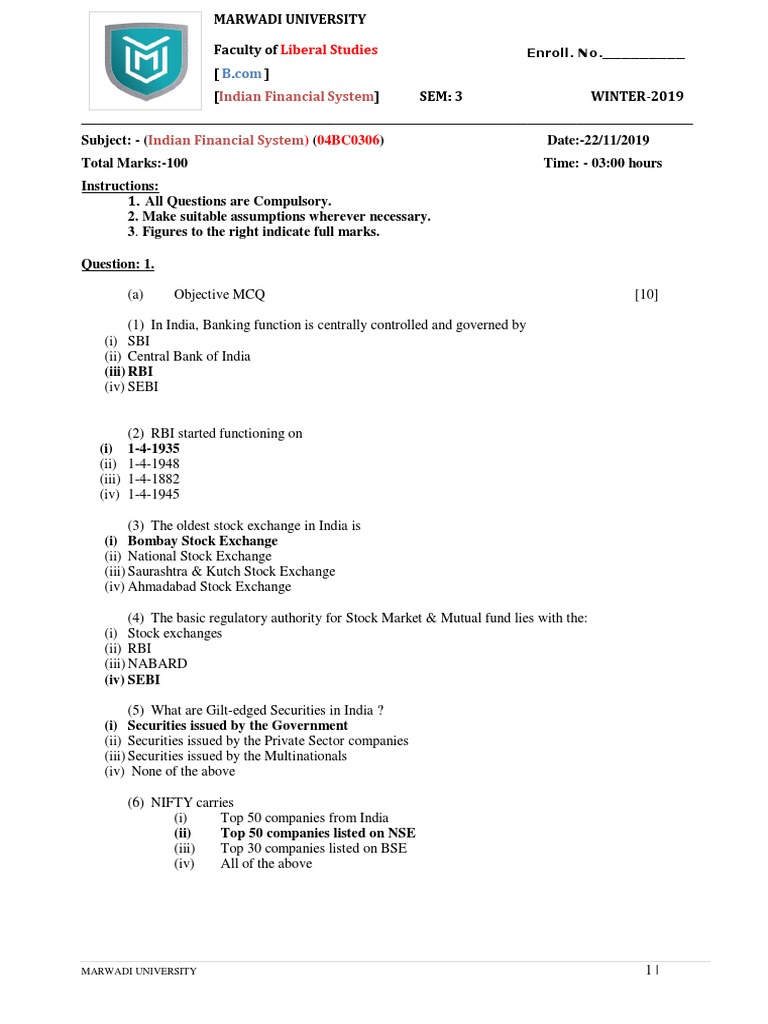[Indian Financial System] SEM: 3 WINTER-2019