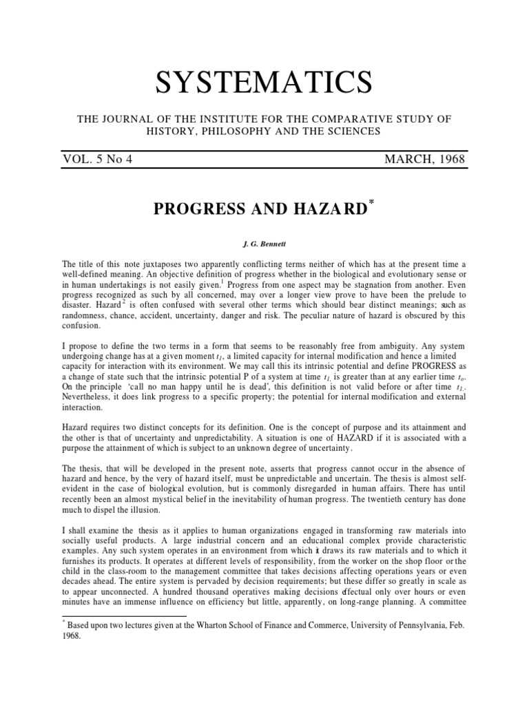 2 Bennett, J. G. The Dramatic Universe, Vol. I p. 20. “Conscious experience faced with hazard is a state of need, and need