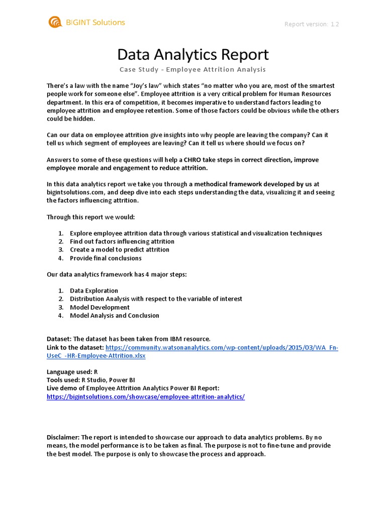 Disclaimer: The report is intended to showcase our approach to data analytics problems. By no