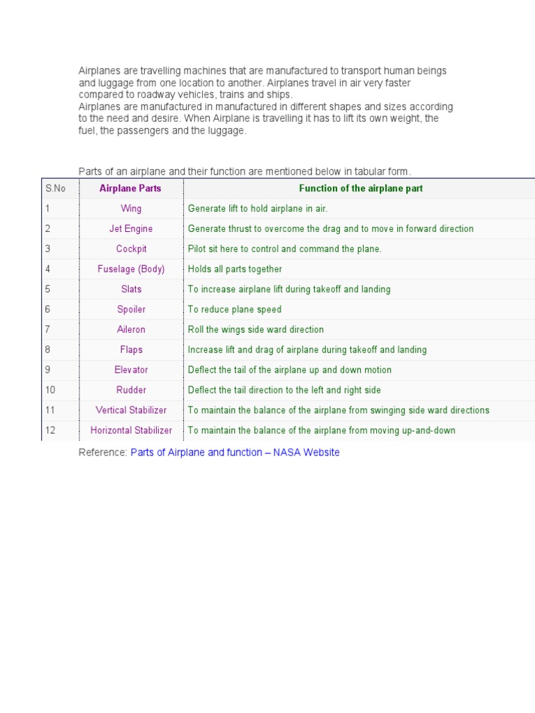 12 Horizontal Stabilizer To maintain the balance of the airplane from moving up-and-down