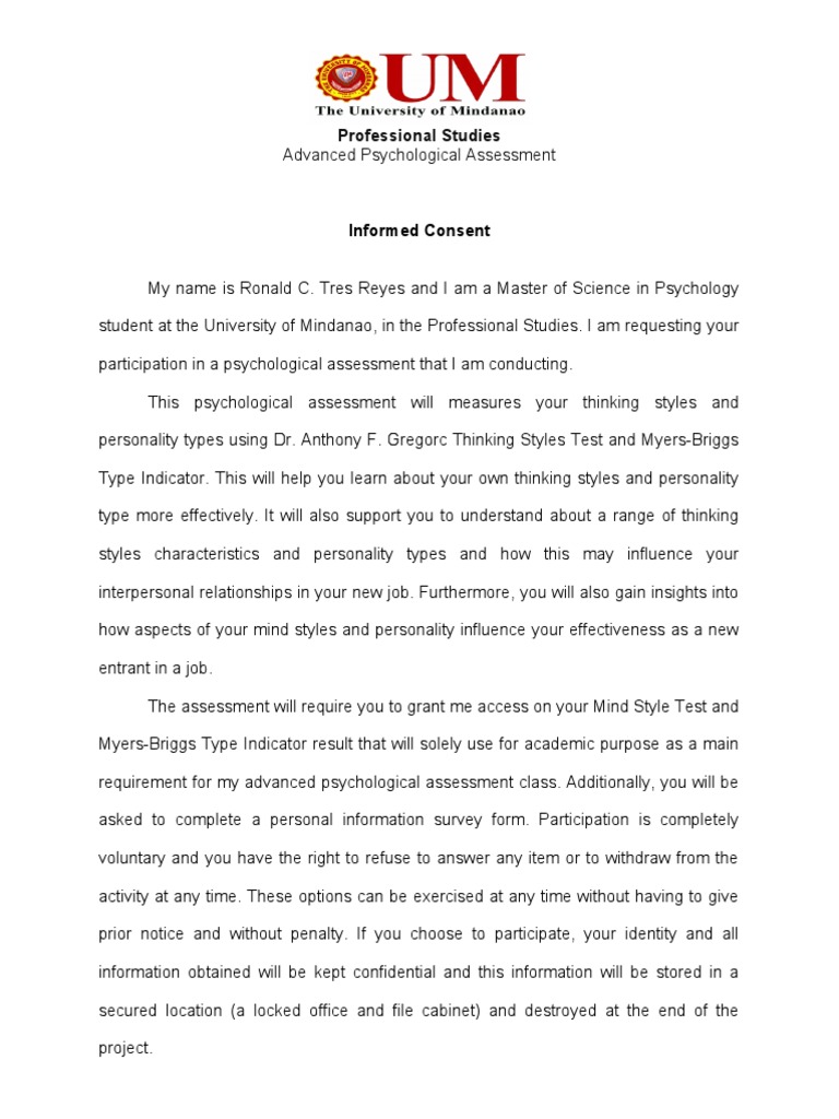 requirement for my advanced psychological assessment class. Additionally, you will be