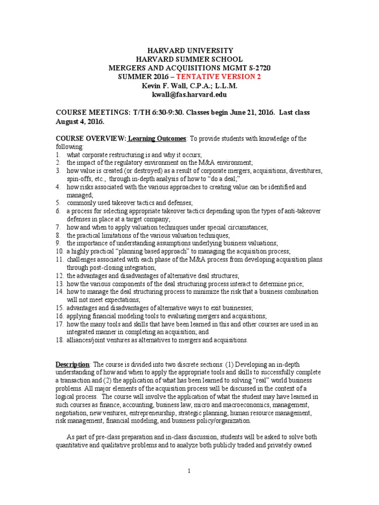 2. Introduction to M&A 1. Chapters 1 Introduction to Mergers and