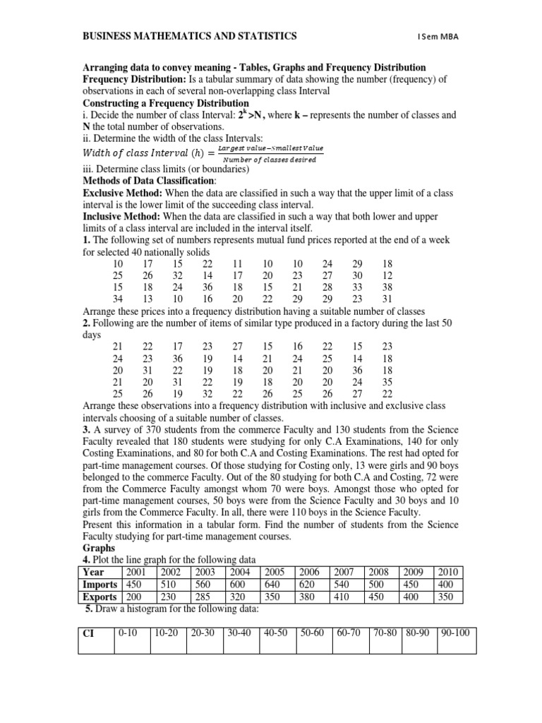 BUSINESS MATHEMATICS AND STATISTICS I Sem MBA