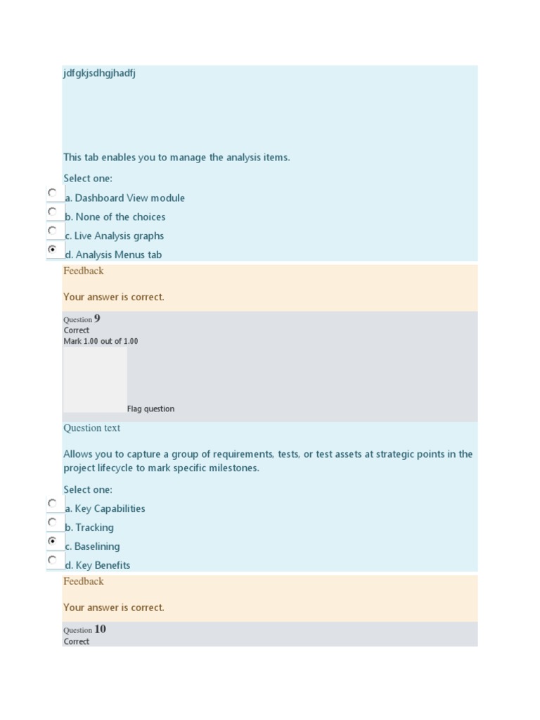 Allows you to capture a group of requirements, tests, or test assets at strategic points in the