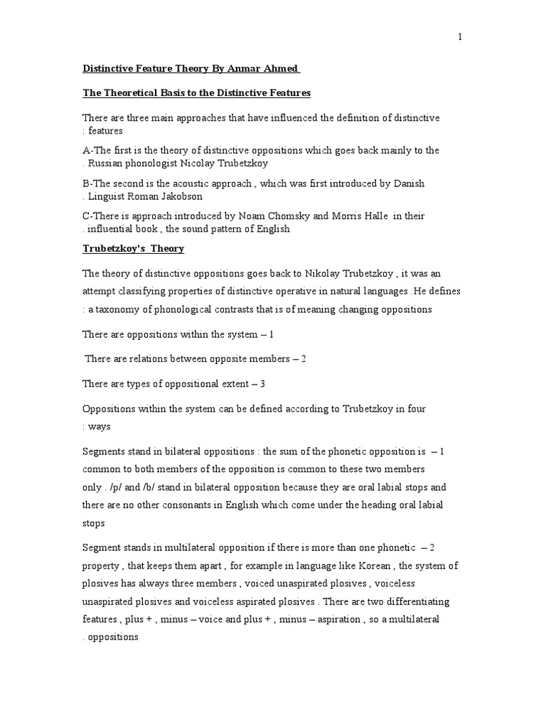 Distinctive Feature Theory By Anmar Ahmed