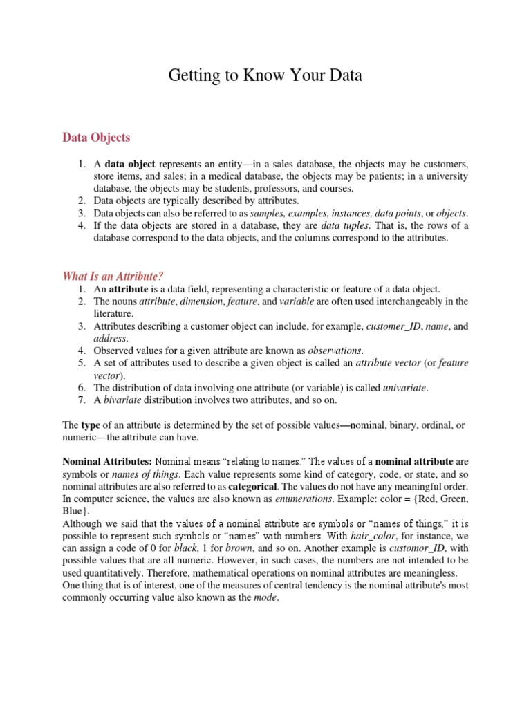 1. An attribute is a data field, representing a characteristic or feature of a data object.