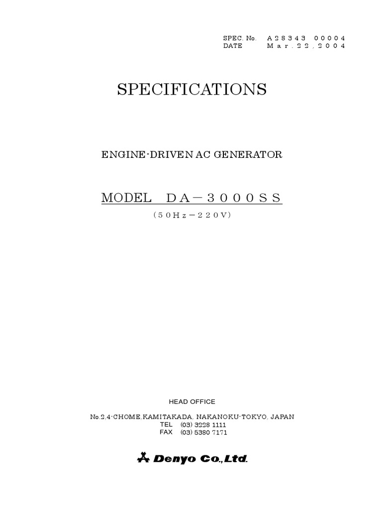 Minor changes after the final design may be made by Denyo Co., Ltd. without prior notice