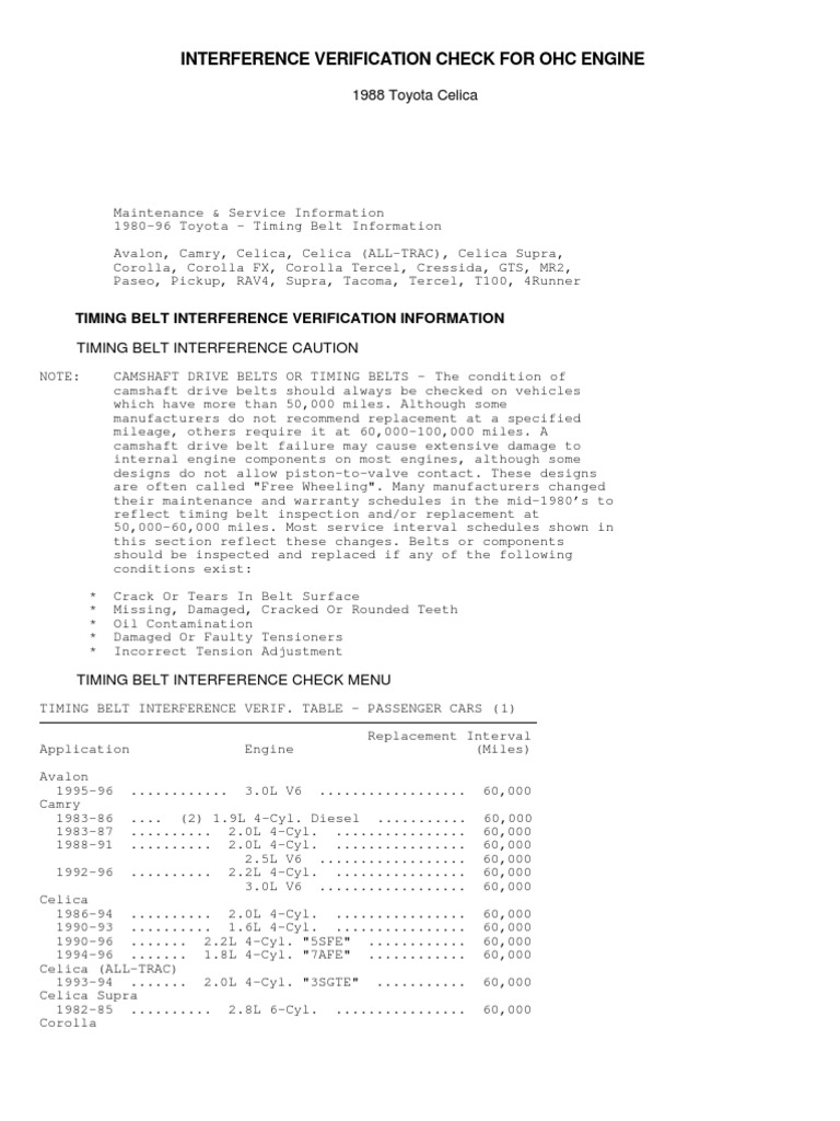 TIMING BELT INTERFERENCE VERIFICATION INFORMATION