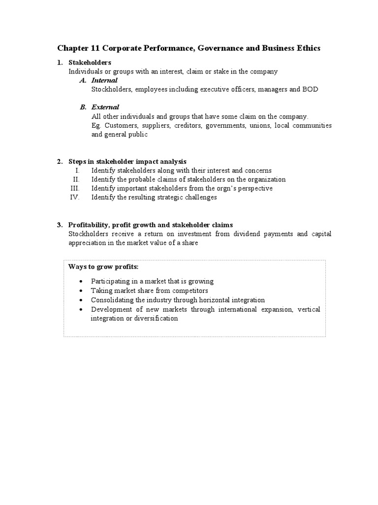 Chapter 11 Corporate Performance, Governance and Business Ethics