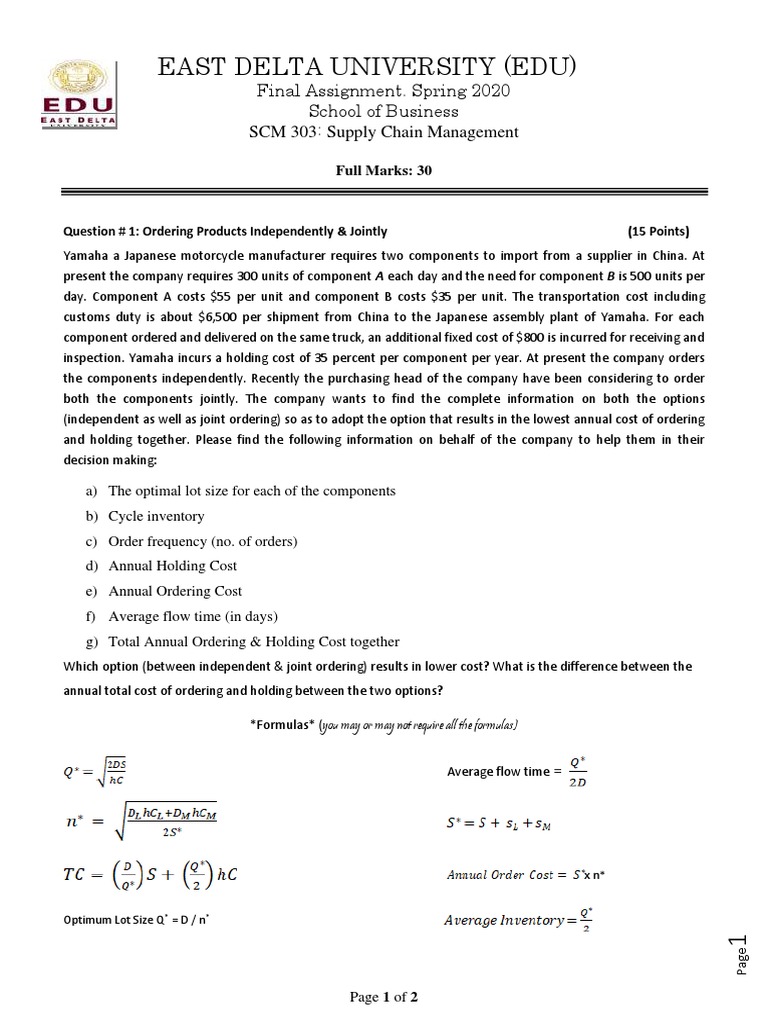 Yamaha a Japanese motorcycle manufacturer requires two components to import from a supplier in China. At