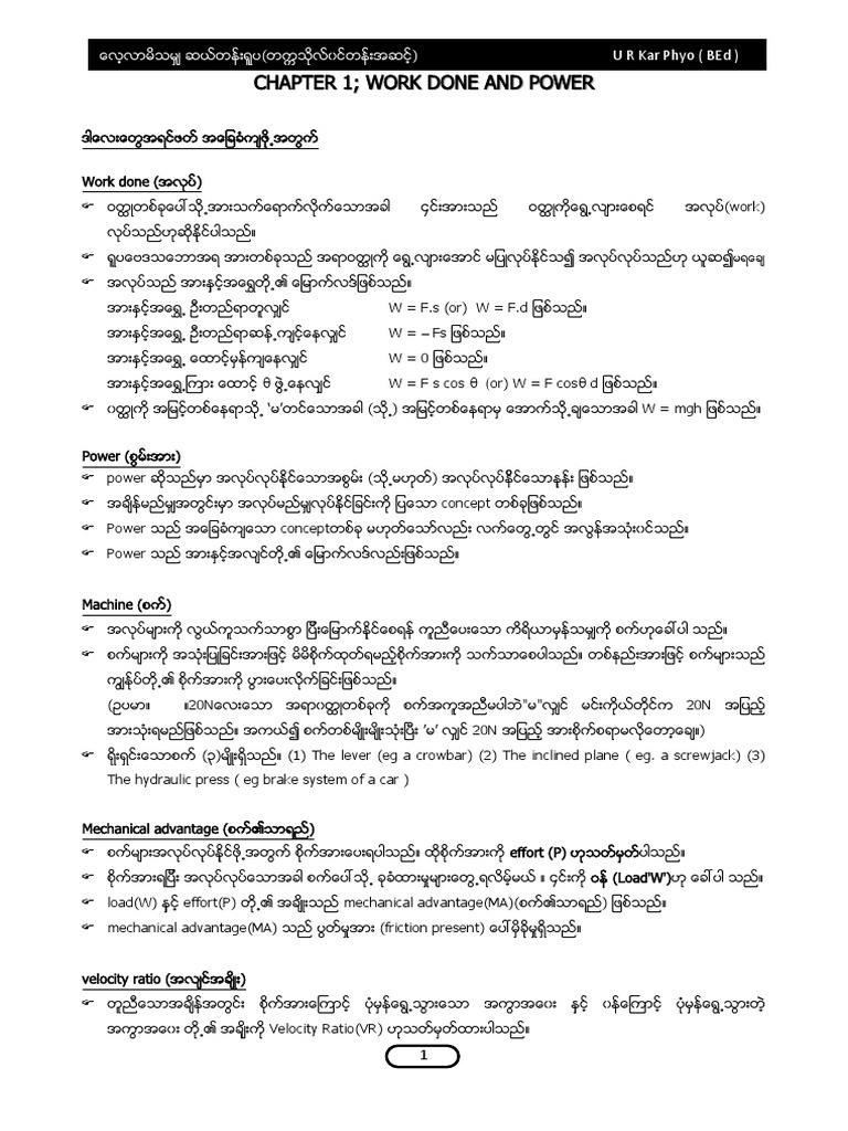 ္ င္တန္းအဆင့္) U R Kar Phyo ( BEd )