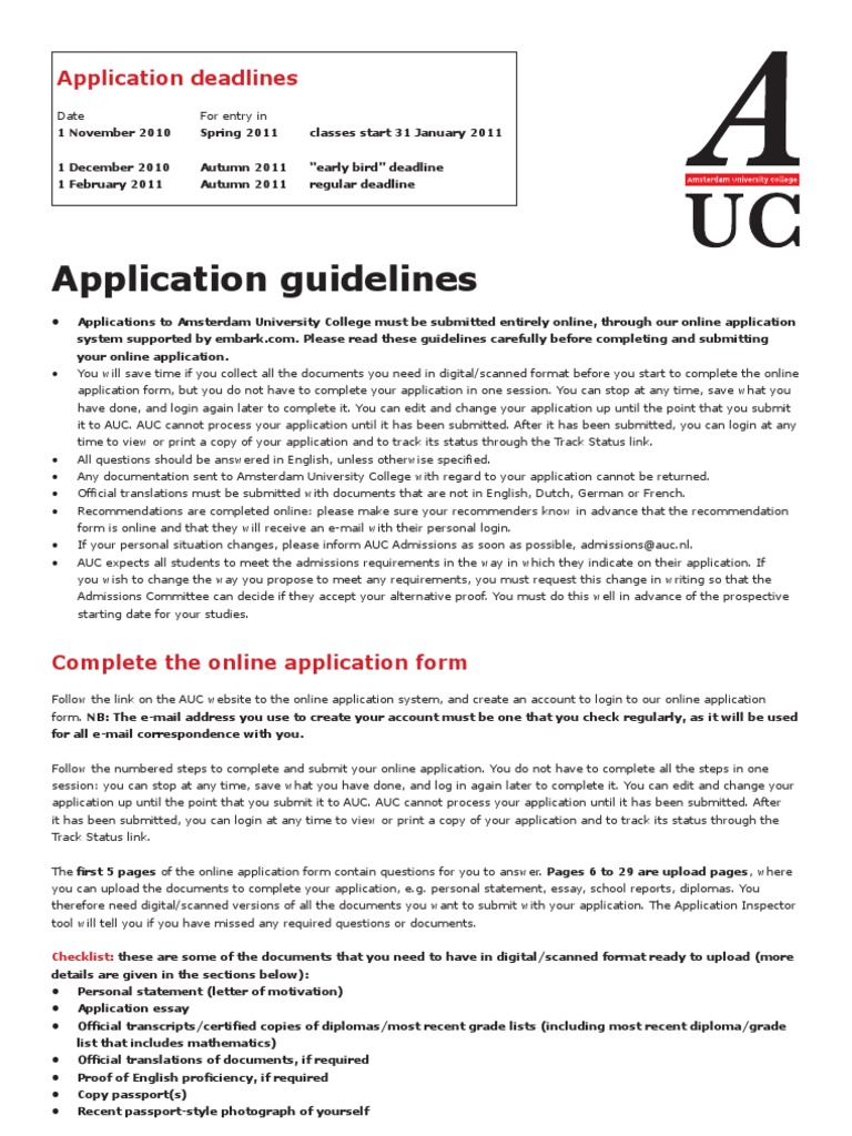 • Applications to Amsterdam University College must be submitted entirely online, through our online application