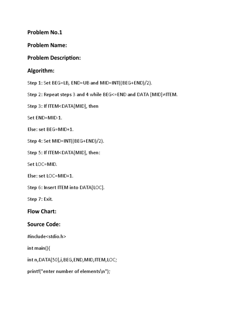 Step 2: Repeat steps 3 and 4 while BEG<=END and DATA [MID]≠ITEM.