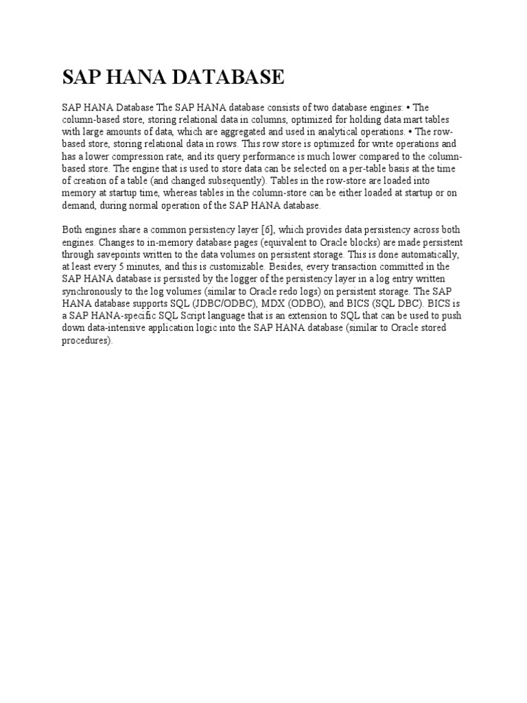 SAP HANA Database The SAP HANA database consists of two database engines: • The