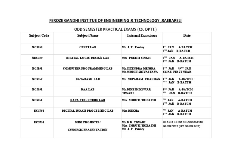 Subject Code Subject Name Internal Examiners Date