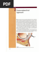 between the orbital rim and eye ball by blunt dissection taking care that conjunctiva