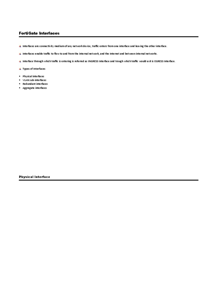 Depending upon the model FortiGate units have a number of physical ports where you connect Ethernet or optical cables.