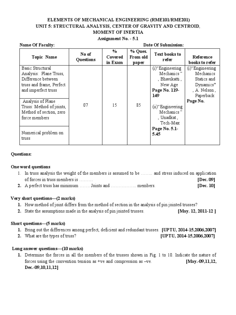 UNIT 5: STRUCTURAL ANALYSIS, CENTER OF GRAVITY AND CENTROID,
