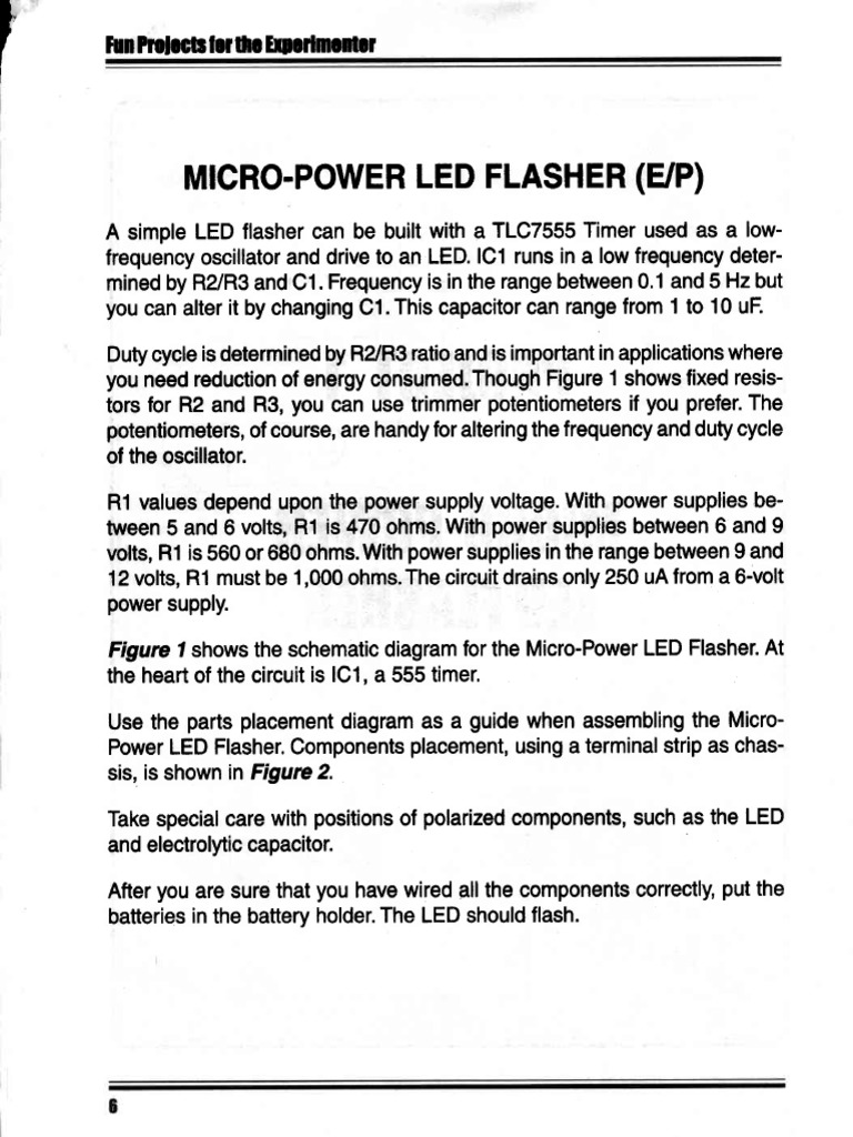 A simpleLEDflashercan be builtwitha TLC7555Timerusedas a low-