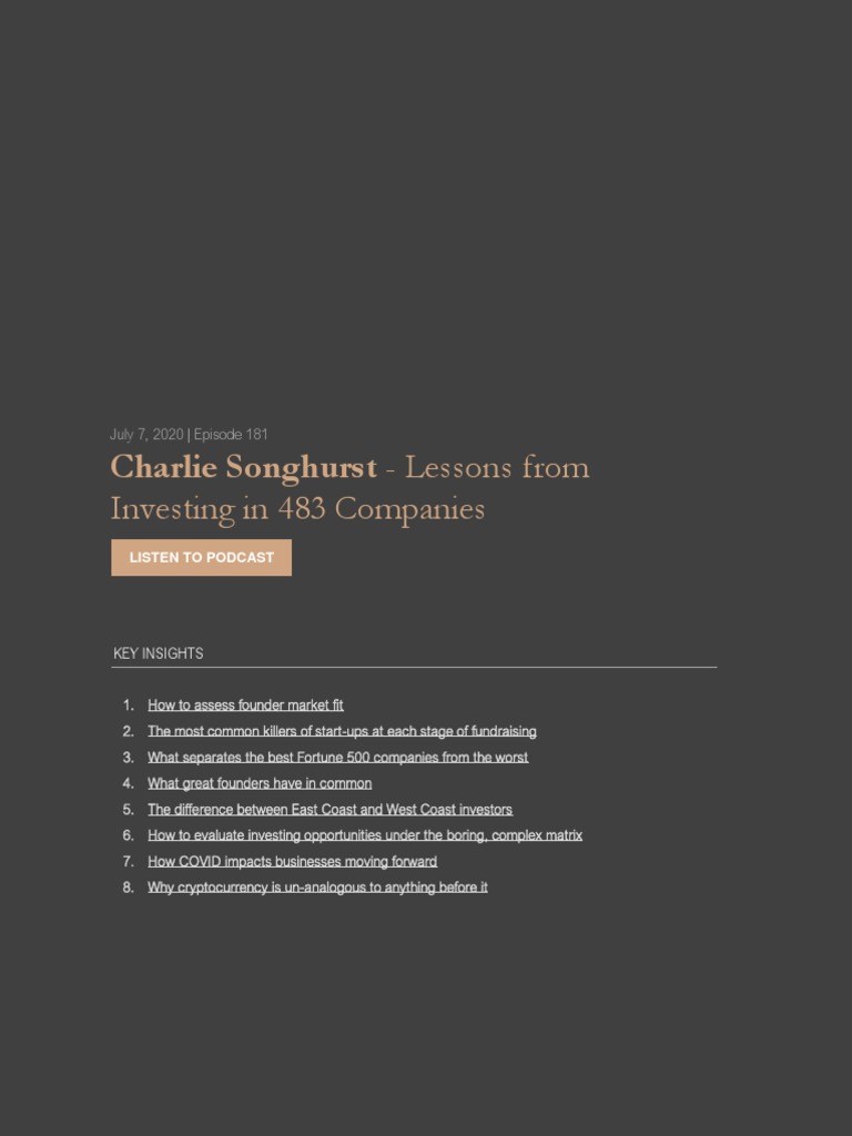 Charlie Songhurst - Lessons From: Investing in 483 Companies