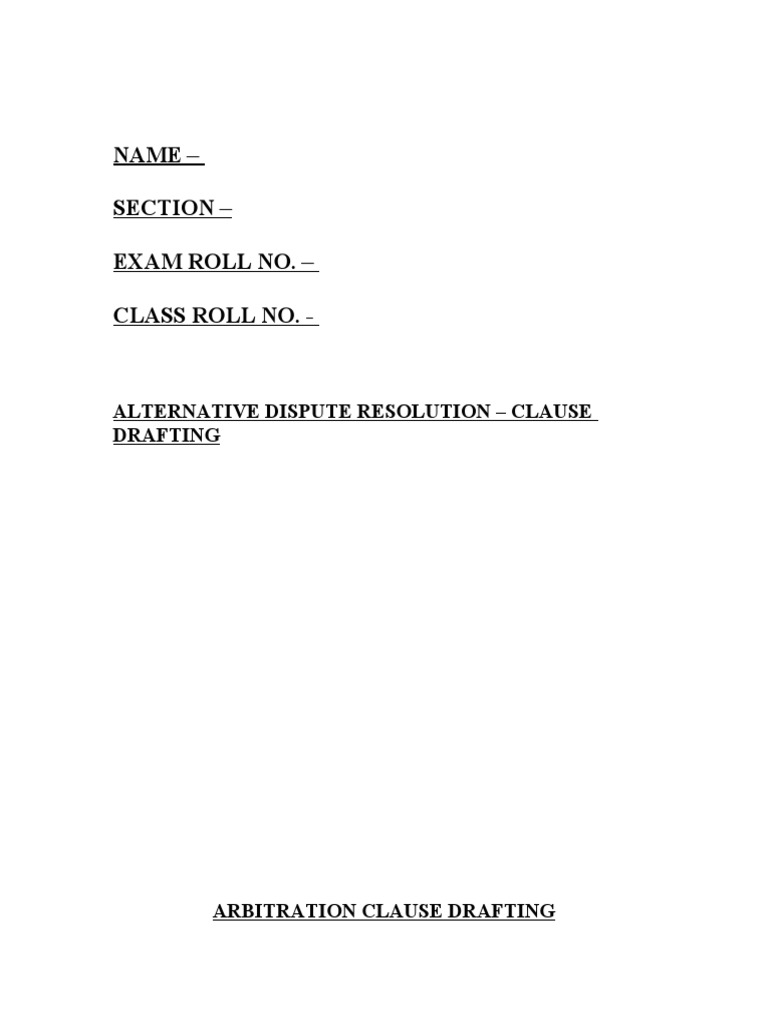 ALTERNATIVE DISPUTE RESOLUTION – CLAUSE