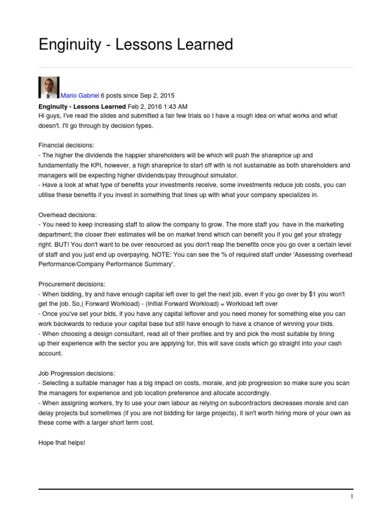 Enginuity - Lessons Learned Feb 2, 2016 1:43 AM