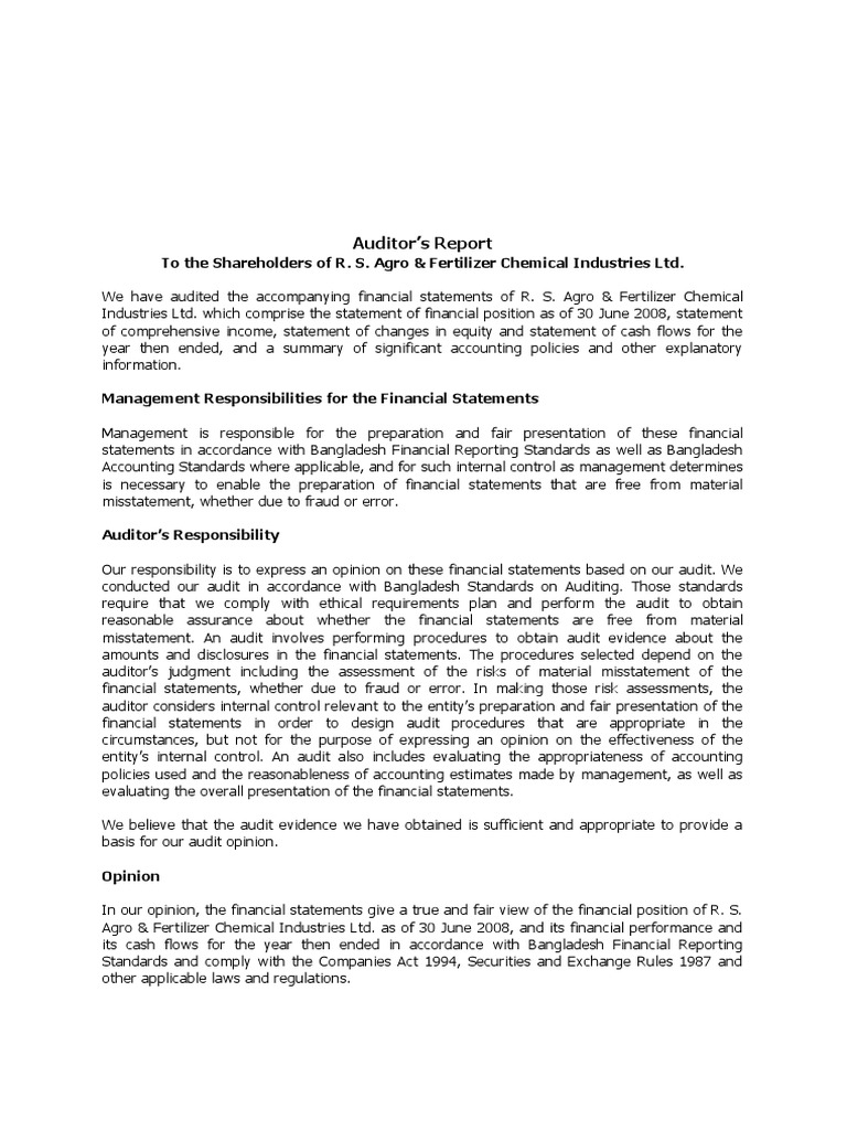 To the Shareholders of R. S. Agro & Fertilizer Chemical Industries Ltd.