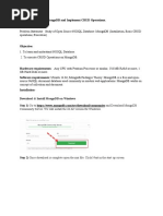 The document provides instructions for basic CRUD operations in MongoDB. It outlines commands for inserting documents into collections using insertOne(), insertMany(), and insert(). It describes updating documents using update(), updateOne(), and updateMany() and specifying fields to update with $set. Delete operations are also covered using deleteOne(), deleteMany(), and remove().