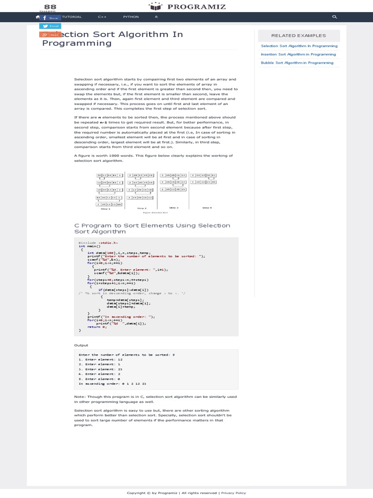 Note: Though this program is in C, selection sort algorithm can be similarly used